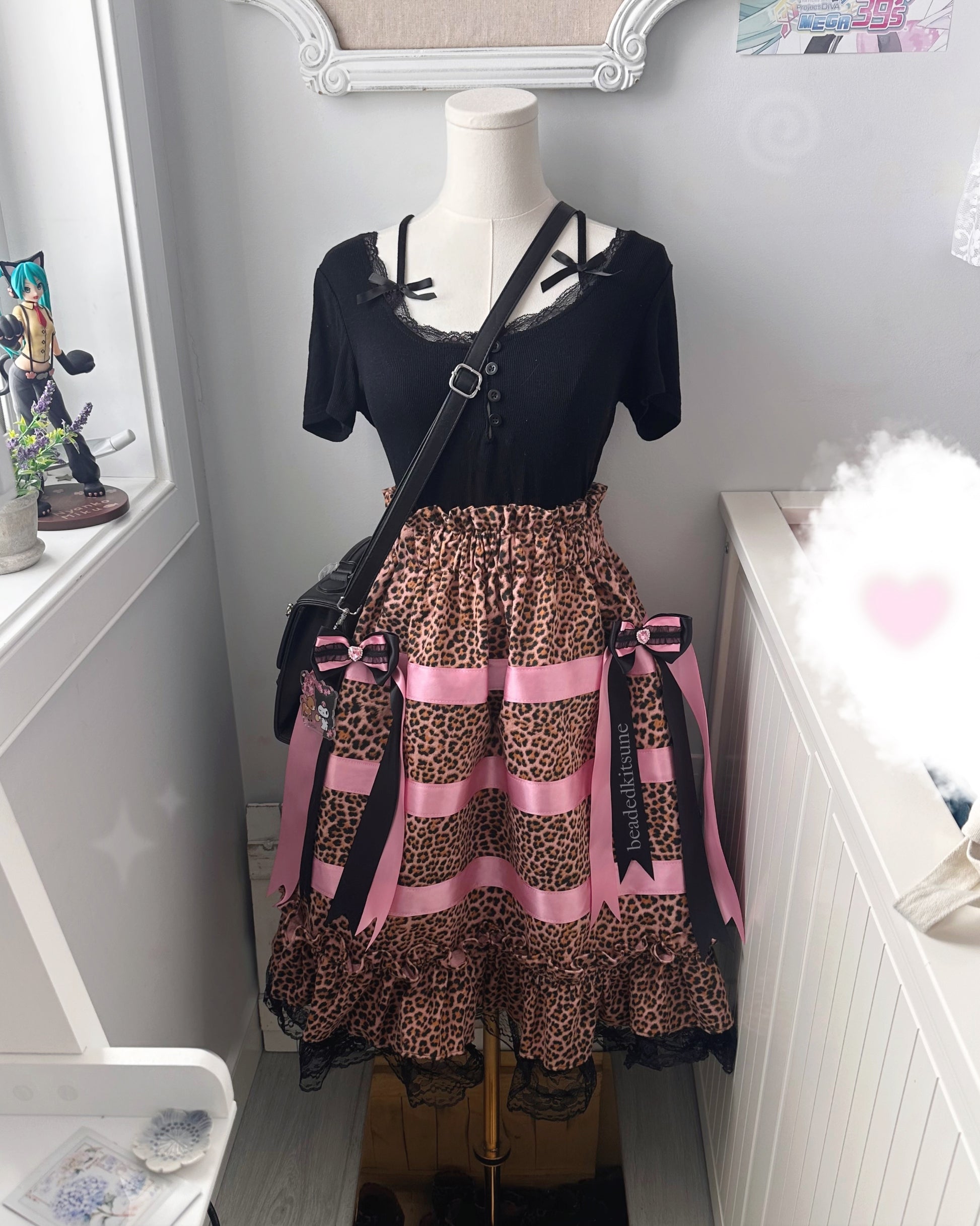 Leopard Ribbin Skirt // Pink+Black